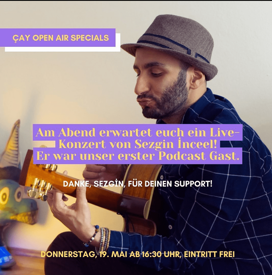Kommt vorbei auf einen Çay! @sezgininceel ist auch am Start und verwöhnt euch mit einem kleinen Live-Konzert.