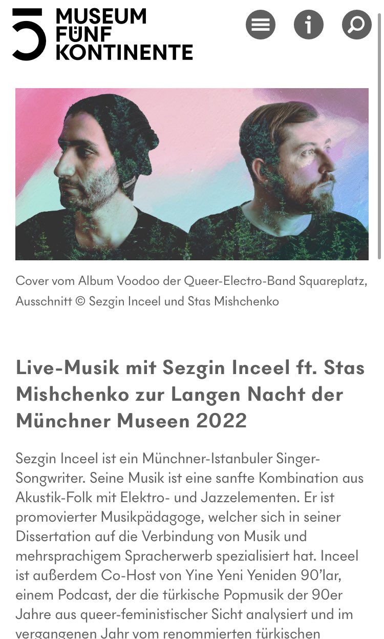 Münih! 15 Ekim’de Lange Nacht der Museen etkinliği kapsamında Museum Fünf Kontinente’de çalıyoruz. Yakınlardaki herkesi beklerim. // München! Am 15. Oktober spielen wir im Museum Fünf Kontinente im Rahmen der Langen Nacht der Museen. Jeder ist willkommen. // Munich! On 15 October, we will be playing at Museum Fünf Kontinente as part of the Lange Nacht der Museen event. Everyone is welcome.