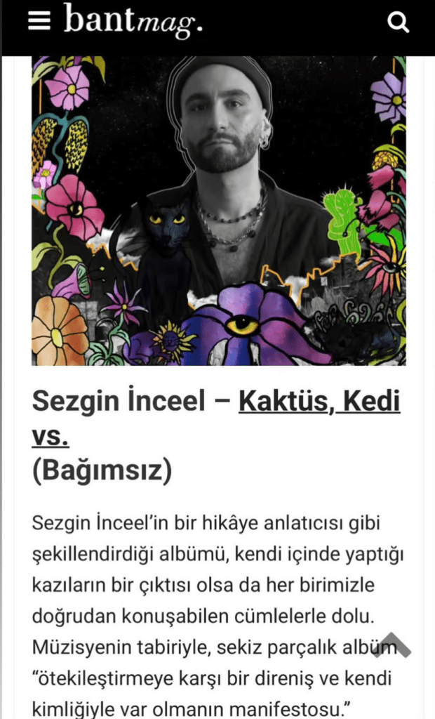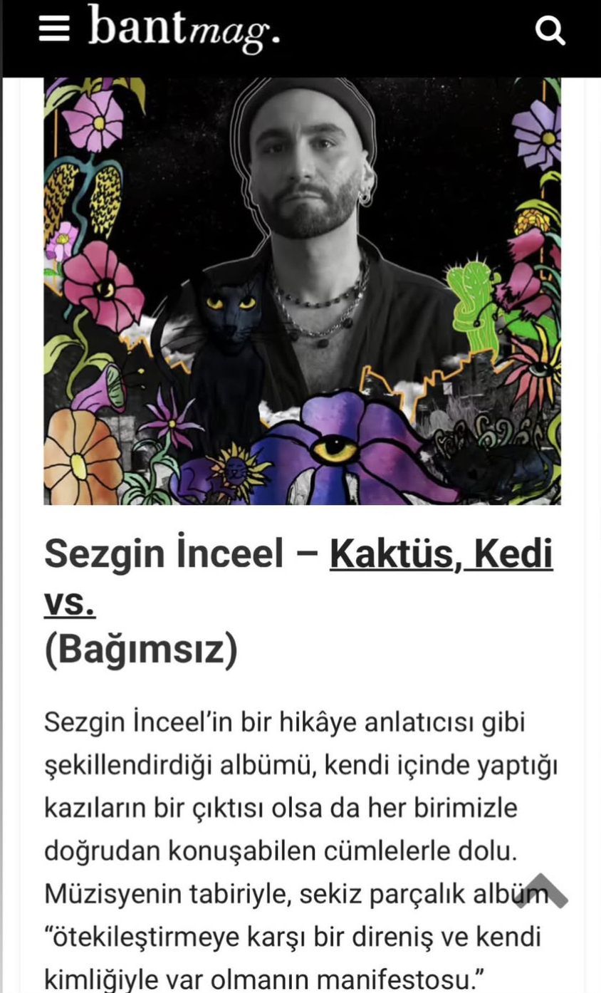 @bantmag 2025: Yerli sahneden 70 kayıt seçkisinde benim albümüm Kaktüs, Kedi vs.’ye de bu güzel sözlerle yer vermiş. Ne mutlu bana 🌵🐈⬛✨